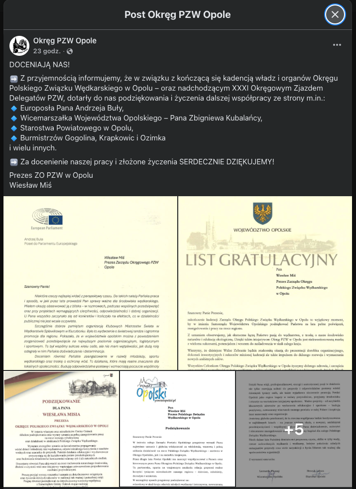 Zbliża się zjazd delegatów. Czas rozliczeń, podsumowań, pytań. Zamiast spokojnej debaty – fala listów gratulacyjnych, podziękowań, rekomendacji. Daty? 19, 20, 23, 28 lutego 2026 roku. Jedna po drugiej. Parlament Europejski. Województwo. Powiat. Wody Polskie. Burmistrzowie. Straż Rybacka. Samorządy.